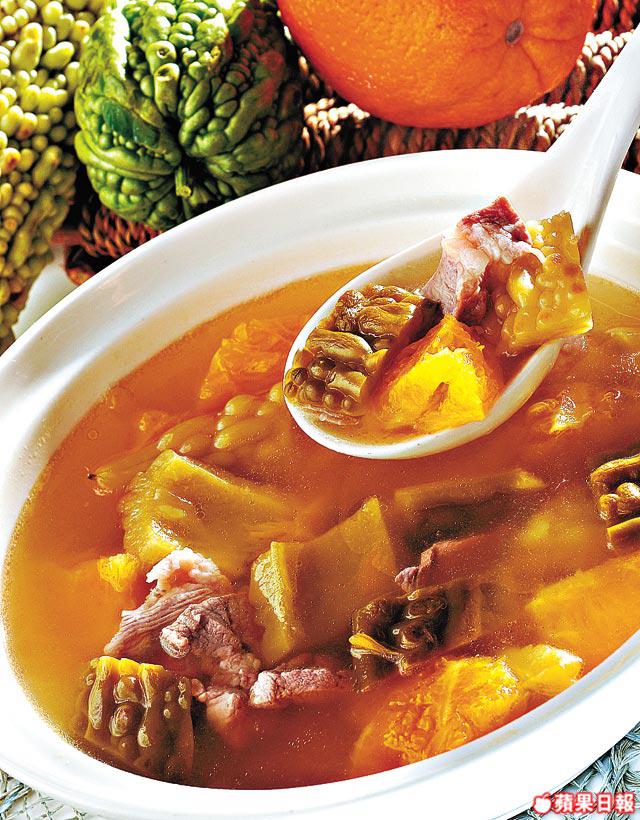 凉瓜有降血糖與調節脂肪的作用,亦可消暑解熱,防醉解酒,功效甚多。雖然本來味苦,但與鮮橙一同下湯,隱見甜味橙香,頗有驚喜。