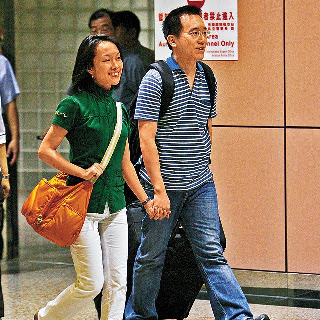 台灣中天電視《全民最大黨》大搞陳致中和黃睿靚的模仿騷(右圖),模仿者的衣着打扮跟前日輕鬆回台的陳致中和黃睿靚(左圖)一模一樣。