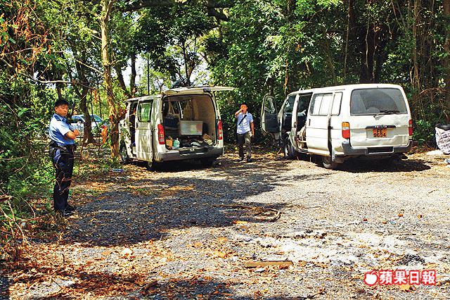 昨中午12時許,大嶼山北分區警署特遣隊三名便衣警員,巡經東涌石榴埔村時,發現叢林內有異聲傳出,探查下發現叢林內停有三部客貨車,三名男子則拿着工具在其中兩部客貨車內工作,他們正用銼準備將客車底盤的編號磨去,刻上新編號,警員於是上前調查。三人見有警出現立即棄下工具逃走,警員經一番追捕後將三人拘捕。
