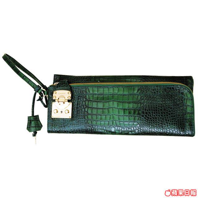 區區一個打工仔,買個幾萬蚊嘅ExoticSkin袋用似乎好破費,但係又想趕潮流,想人有我有。其實除咗買真皮之外,不妨考慮一下仿皮或者壓紋,價錢平好多,睇落仲好似樣,當然一摸上手就知差別。DKNY的鱷魚皮壓紋造得唔錯,本身鱷魚皮比較硬身,所以睇落都有幾分似真,我就睇中深綠色Croco壓紋Clutch,妳呢?