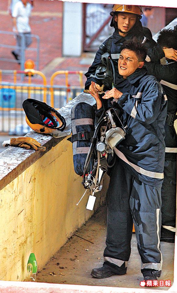 無綫新劇《烈火雄心III》近日拍攝得如火如荼,前日鄭嘉穎、黃宗澤(Bosco)及其他演員,穿上全套消防員裝束在荃灣一個已空置的工業大廈拍攝救火戲,現場還有真的消防員及消防車協助拍攝,場面逼真,但由於現場很熱,只見嘉穎和Bosco一有空檔便除下消防帽唞氣,Bosco更要吸氧氣及稍作休息。
