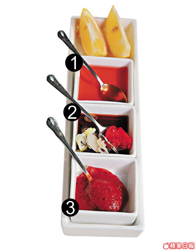 囗辣茄醬材料:茄汁3湯匙、黑椒汁/tabasco/蒜茸各1湯匙