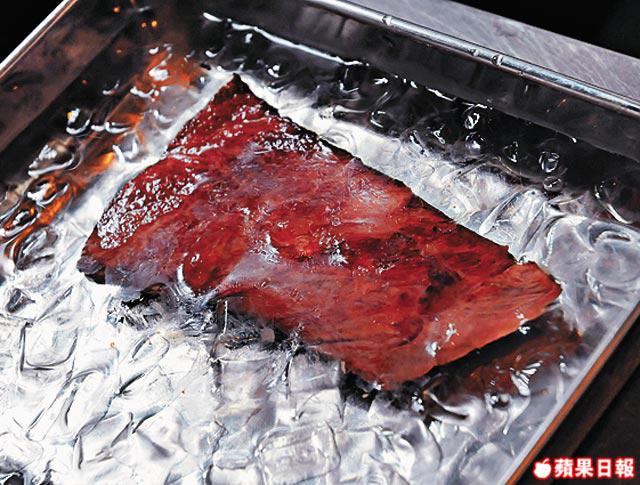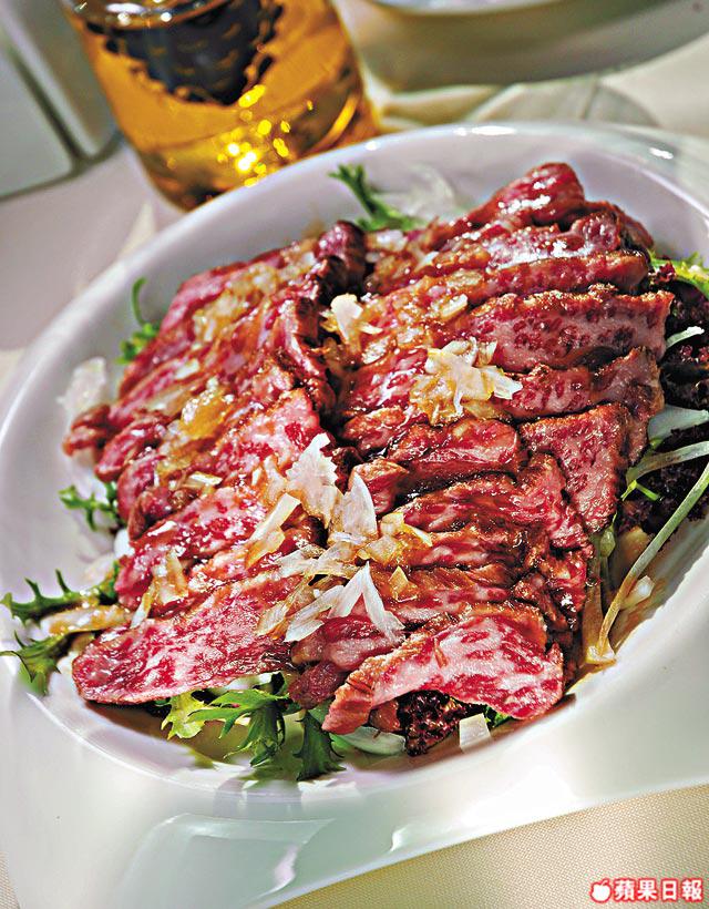 和牛煎完立即浸冰水,可保持三成熟的軟滑度。沙律汁雪凍才顯出生和牛的鮮味,最好之前準備好喇!