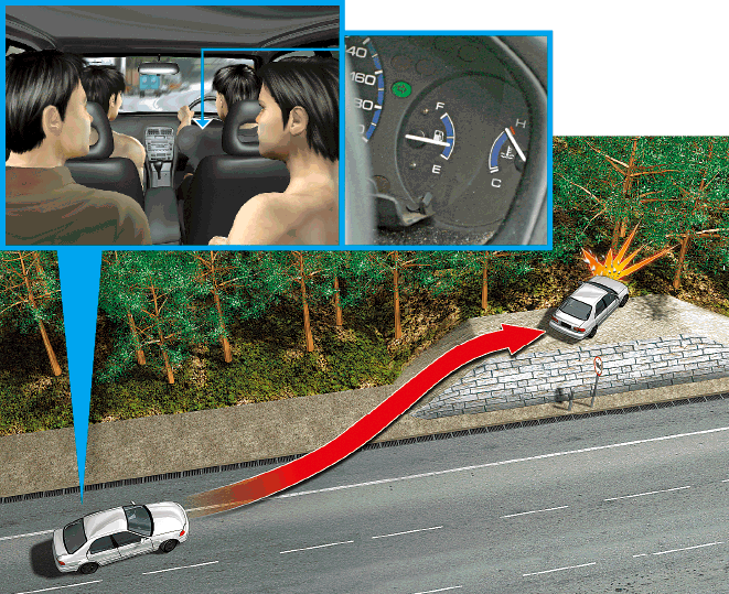 昨日意外中的司機為19歲姓楊青年,他在一間速遞公司工作,上午11時許,他駕駛私家車在大埔接載三名同事,包括18歲姓陳和兩名同是21歲分別姓葉和姓嚴的男同事,準備一同返回元朗的公司開工。當汽車沿新田公路慢線駛至上址時,司機突然發現錶板上的熱度計出現「爆錶」,顯示水箱水滾,他於是將車駛上烽火台處理。