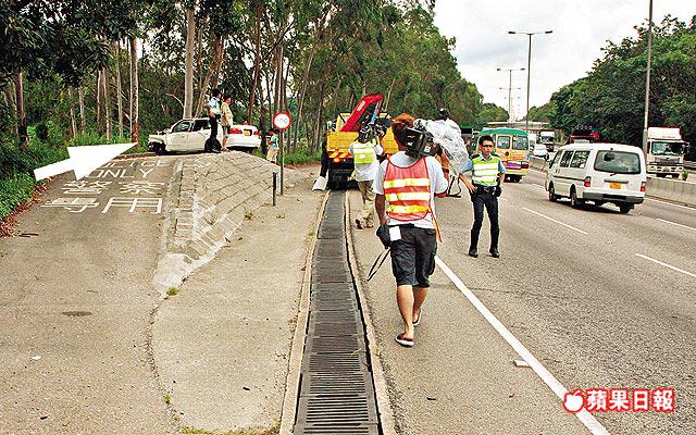意外現場為新田公路向元朗方向近落馬洲迴旋處,路邊設有一個約兩米高的斜台,作為警車專門區俗稱「烽火台」,去年9月23日,一輛價值200萬元的法拉利跑車,就在此同一位置失事撞向烽火台,繼而凌空插入叢林着火焚燒,51歲駕駛法拉利的針織廠老闆當場被燒死,而其胞兄亦於案發後45分鐘,在青衣住所疑因家事及病跳樓喪生。