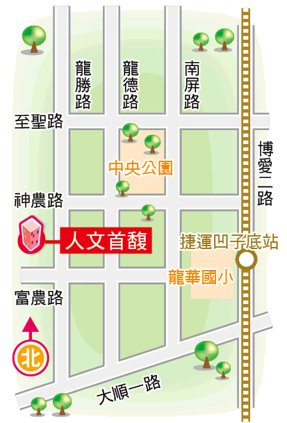 皇苑開發商「人文首馥」位於農16龍勝路、神農路口,正對萬坪中央公園,享有永久自然景觀,鄰近漢神巨蛋百貨,距離捷運凹子底站步行約10分鐘可達。基地面積約4萬呎,訴求FTTB(FibertotheBuilding)光纖上網,並採用德國BOSCH廚具,衛浴搭配德國HOESH按摩浴缸、TOTO浴室暖風除濕機等。