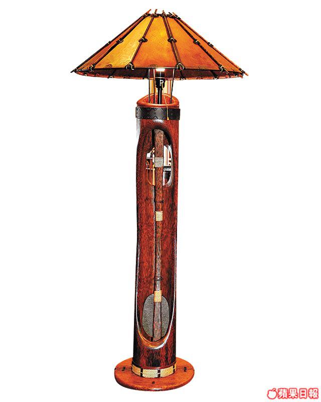 整個燈座由原棵椰子樹切割而成,燈罩則將削薄的牛皮浸椰子油,令其更堅韌耐用。用皮燈罩可令燈光更柔和。(高55吋)$7,200/a
