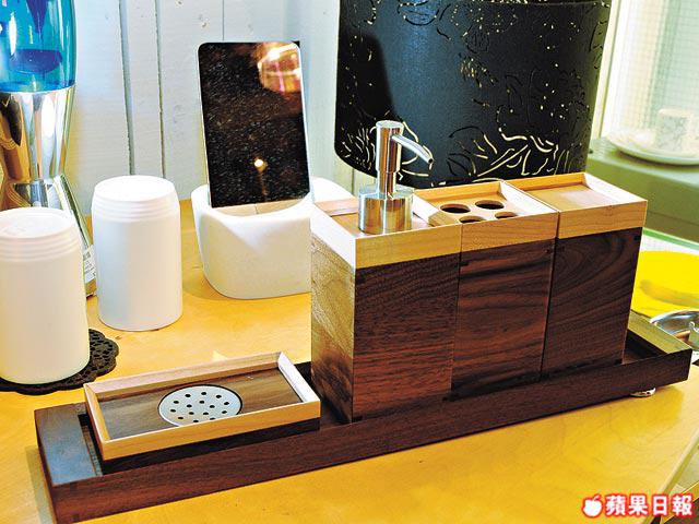 傳統認為木不能濕水,但這沐浴套裝分別用楓木及胡桃木作顏色對比,加上金屬配件令四正的用具即時變得搶眼。全套$950/c