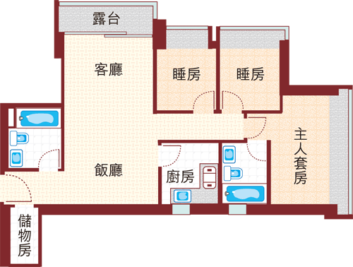 間隔:3房2廳(1套房、儲物房)
