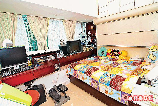 大廳外連賞景露台,單位景觀開揚,既可望開揚海景,亦可欣賞區內翠綠草原,遠至新樓盤首都一帶。單位共設3個房間,主人套房空間寬敞,附有特大窗戶,窗台位置已改建為書桌,慳位實用,至於餘下2房則為兒童睡房,分別設有吊櫃,方便儲物。