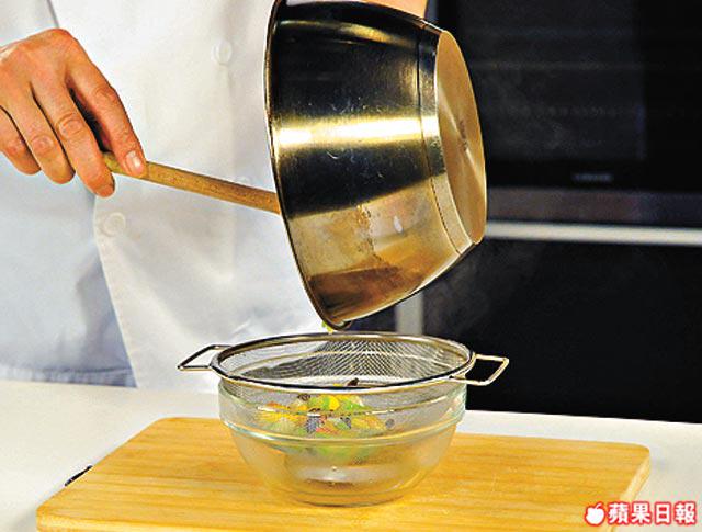 4.燒滾水,將(3)蒸8分鐘至全熟,倒出多餘水份。