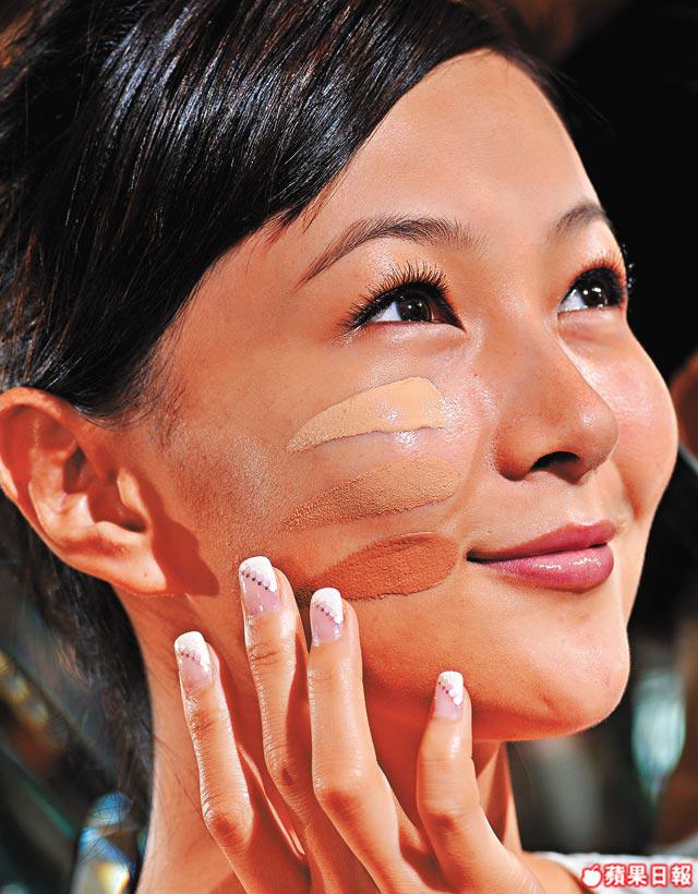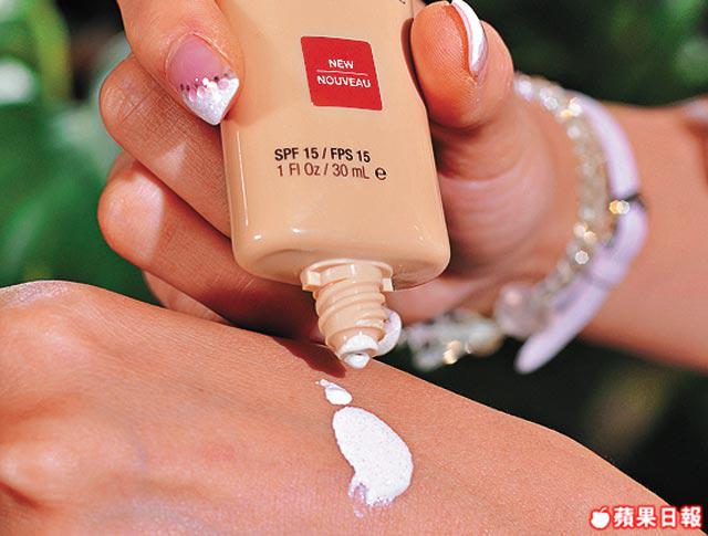 傳統粉底,由1號色至6號色,甚至分得更細緻,但有時真的很難揀一隻百分百對色的粉底,最怕揀得太白,唔自然。Revlon今次推出創新粉底,很聰明,三色選擇,簡單分為210Light、220LightMedium及230Medium,膚色偏白揀最淺色,相反則選230。擠出粉底,是白色乳液狀,因為其內含微細多色彩小珠,塗上面後,就會自動調至適合肌膚的顏色,不同人效果不同,最大好處是用法容易,當其為一般面霜使用即可,薄薄一層,即可做到令膚色均勻至自然Nude色,若果面上有瑕疵,則可以遮瑕膏修補。