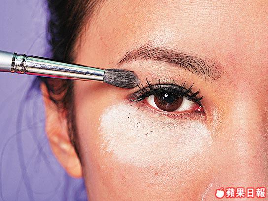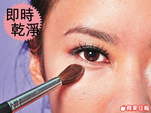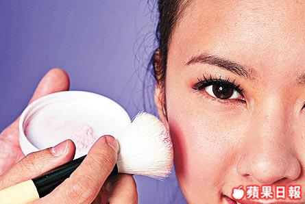 用胭脂混合偏白碎粉全面掃,有助塑造胭脂透紅效果。