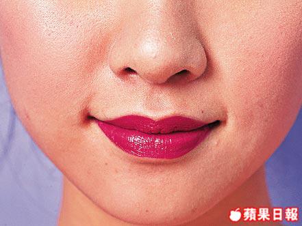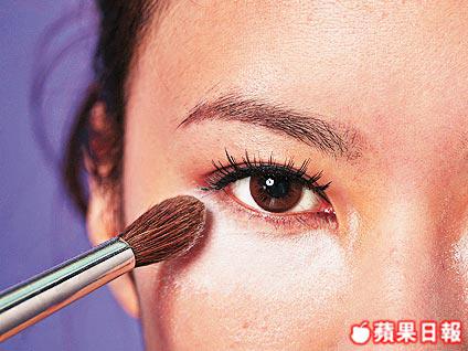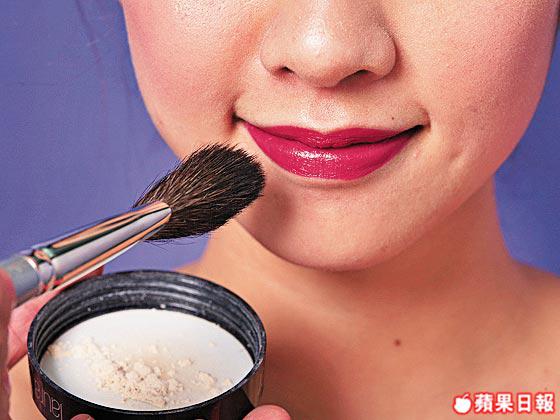 沾上粉紅色碎粉,打圈掃在面頰笑肌位或下巴位,令整個面色通紅有光澤。