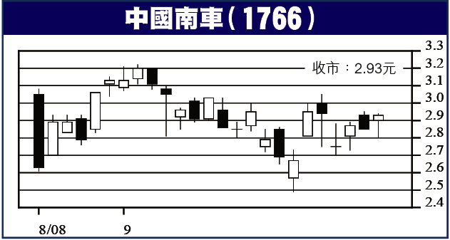 在選股方面,上市日子尚淺的中國南車(1766)頗具留意價值。近期股海大波動,惟中國南車期內表現相對較穩,波幅範圍只介乎2.50元至3元之間,散戶即使在公開招股時以每股2.60元認購,持貨至今一直唔走,總算有驚無險,依然贏錢。