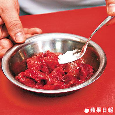 醃料:鹽1/3茶匙、糖1/2茶匙、生粉1/2茶匙、水1湯匙