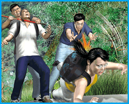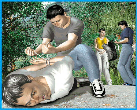 【本報訊】一對熱愛行山的父女,昨晨在馬鞍山吊手岩遭兩山賊行劫,六旬男事主因為反抗被箍頸拳毆,幾乎窒息;山賊搶去數千元財物後將他們綑綁,落山逃走。不過賊人百密一疏,沒有搜出事主生果刀和手提電話,父女幾經困難終於自行鬆綁報警求救。警方趕至在山腳與賊人相遇,追捕50米擒獲一人,另一人跳入草叢逃去無蹤。記者:陳天華、鄧偉明