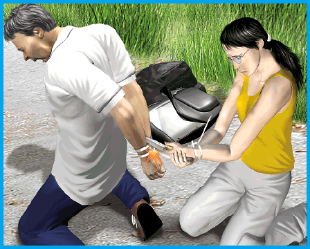 不過賊人百密一疏,沒有發現江伯背囊內用作自衞的生果刀、和褲袋內的手提電話,江伯雙手被反綁,女兒則被正手綑綁,於是着女兒拿出生果刀,互相割斷對方的索帶再致電報警;其間江女因為太緊張而割傷父親手腕,他們稍後由直升機送到港島律敦治醫院治理。