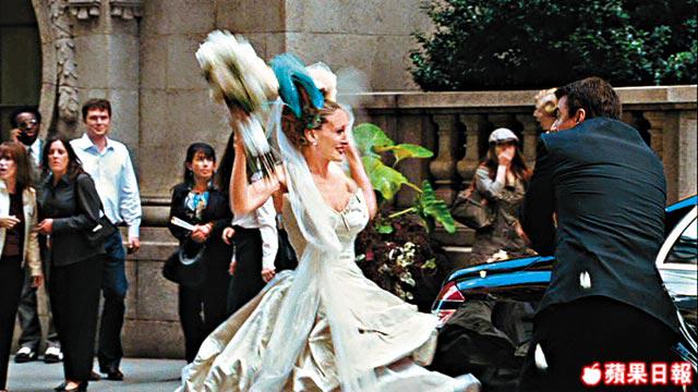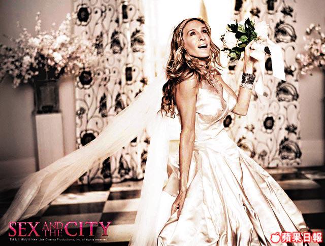 電影跟《穿Prada的惡魔》如出一轍,戲中必睇Carrie接受《Vogue》的「最後一個單身女子」的訪問,連續換了七套名牌婚紗拍硬照的一幕,由VeraWang開始,最後那件西太后也成了NewYorkPublicLibrary行禮和打交的悲劇戰衣。