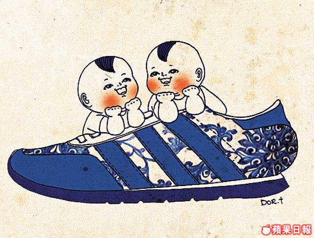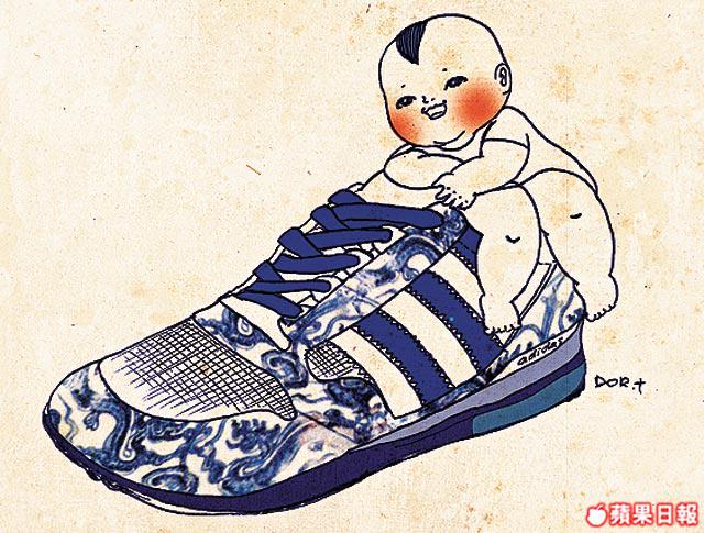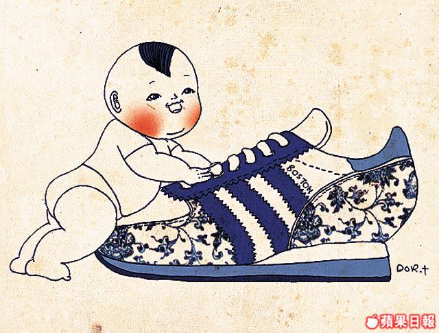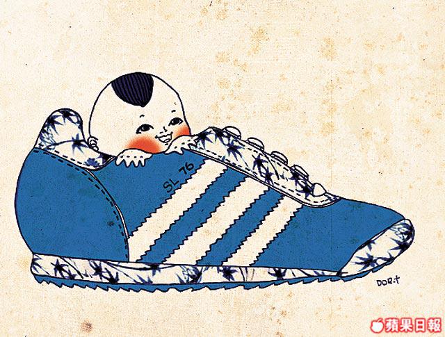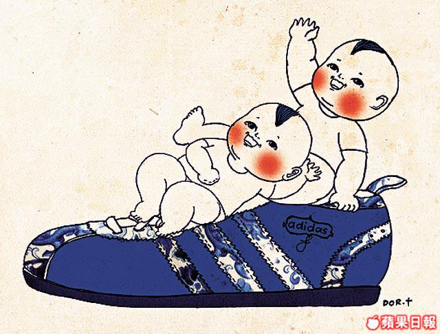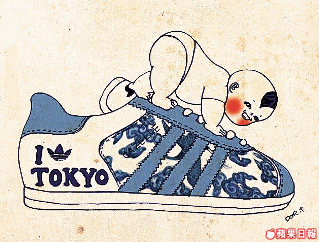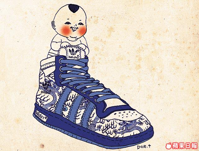 偏心?面對這個脹爆青花BB迷魂陣,實在不得不叫至「CuteCute聲」四起,繪製脹爆青花BB而崛起的鄧卓越(Dorophy),不但中正小記要害,還向北京方面的同志們大舉進攻,找來運動大牌如adidas合作起壇,於三里屯的品牌中心設下名為「KicksDiscovery」展覽,齊集64個與adidas相關的脹爆青花BB,刺激同志們未泯童心!