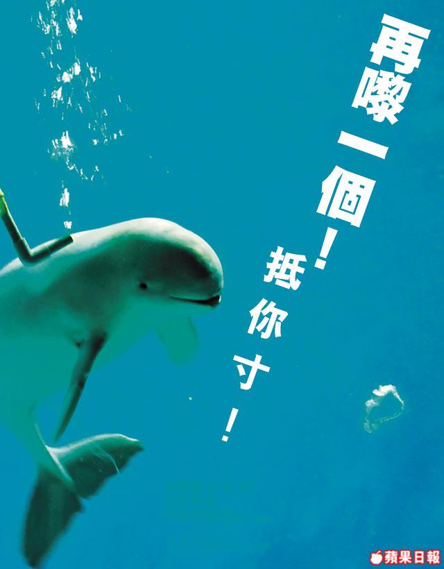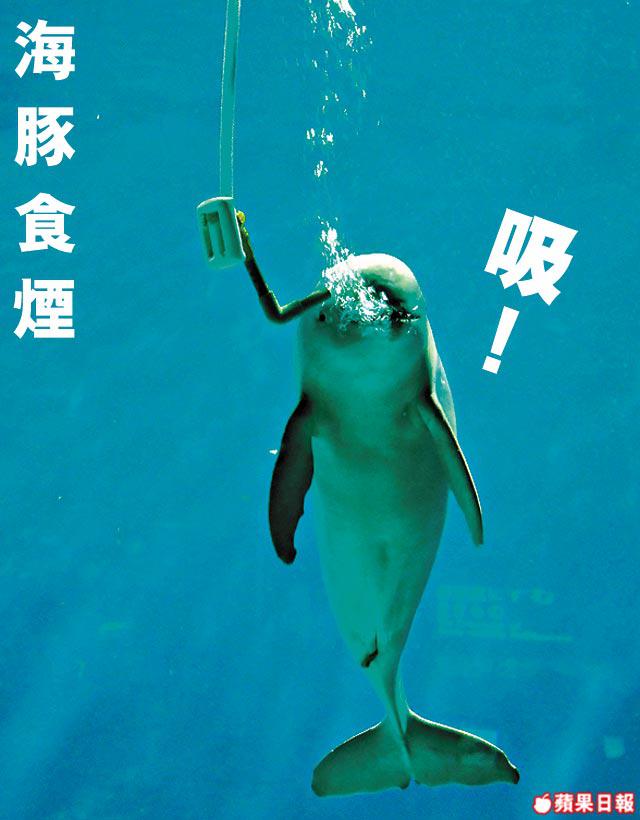 為了兩條海豚拍腿大場面,我們犯得着跟陌生人逼在一塊舉晒機等影相嗎?我暗想日本人使唔使咁誇?忽然其中一隻江豬(又名江豚,鯨類一種)潛入水中,對魚缸外的我們投以一個親善的微笑,之後趨近一支擺咗好耐但唔知係乜的不明物體,停3秒,又3秒後,江豬嘴邊飄出一個如假包換童叟無欺的白色圈圈!大概見眾人大呼小叫,吸煙的江豬爽到不得了,連隨再吸、再吐、又吸、又吐,還不忘擺尾,可在公眾場所食煙咁寸,多少人恨不到哦,的確抵佢招積。