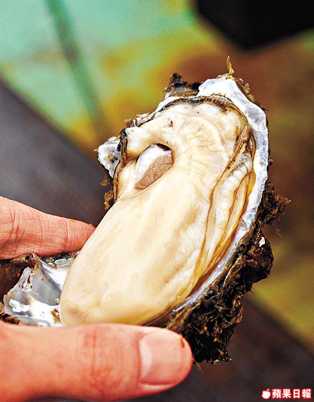 快艇在風雨之中終於飄到養蠔場,迎接我們的不是肥美鮮蠔和檸檬Tabasco,而是那一串串在海上晾起的貝殼,比較像薯片。貝殼上面原來是BB蠔,小小一片約黏了300隻,當中只有十分之一可以茁壯成半隻手掌大的生蠔,成長期約兩年半。看着蠔叔在海中即席撈起一大串烏卒卒生蠔,好不容易剝開才露出裏面肥美的蠔肉,我不禁慨嘆平日在Buffet枱上輕易掃低的幾碟生蠔,得來如此不易。