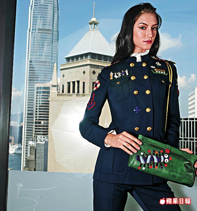 卡通化的肩章除了出現在特別版的軍服之外,秋冬的手袋也有用上。手袋飾上大量別針,包括水手、美女、海軍,也有錨和可愛的救生圈等。