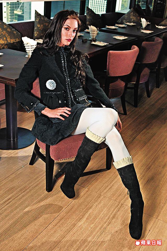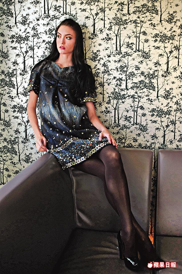 這襲閃片裙以特別處理的安哥拉山羊毛織出漸變色效果,上面綴大量水晶和金屬刺繡trimming,令平凡的設計即時變為華麗的晚裝,別具奢華氣派。