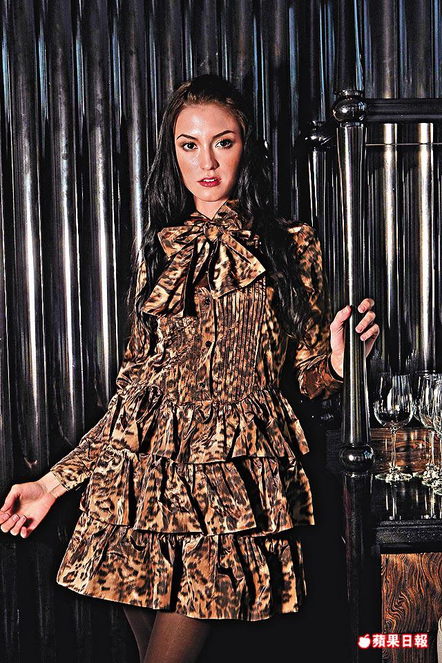 充滿野性的豹紋,是Moschino常用的圖案之一,領口以維多利亞企領復古剪裁,下身則是十分少女的ruffle設計,集野性與少女味於一身。