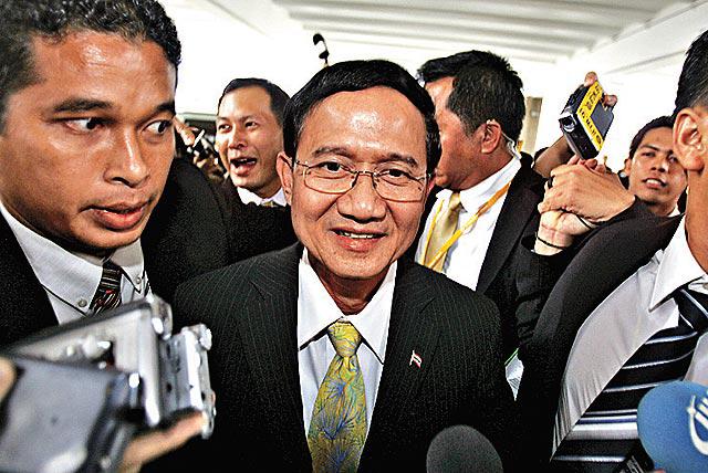 28/02/2008 他信高姿態回國接受審訊,獲支持者以英雄式歡迎