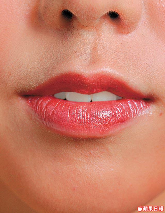 3.均勻塗上唇膏後,再平均塗上薄薄一層唇彩,增加潤澤效果。