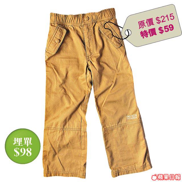 特價貨一樣講Details,藍色長袖Tee(適合3-5歲)於圖案印花及袖位綴以迷彩,配卡其色長褲(適合4-5歲)啱好動男孩。