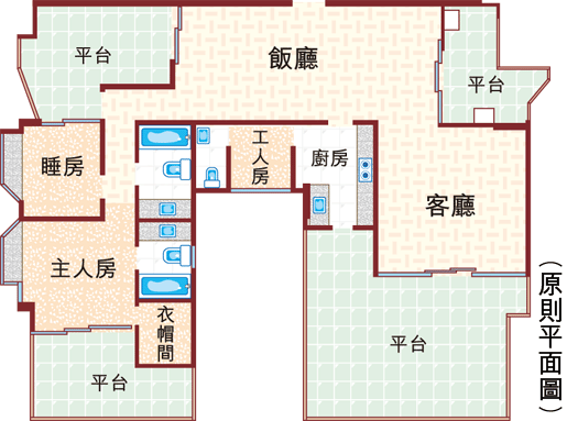 廳房共設4個平台