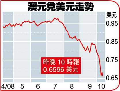 本周滙市可用「驚心動魄」四個字去形容,筆者在市場多年,記憶中亦似乎未曾見過澳元和紐元可以有如此大的波幅。澳元周一高低位分別為0.7727和0.6999,相差逾700點子,如果以為澳元跌幅過份而趁低吸納的話,澳元周三跌至0.6439美元,與當日高位的0.7156再出現單日逾700點子波幅。紐元跌幅相對溫和,但最低位的0.5791美元,亦較上周收市價的0.6614下跌了800點子有多,可見順勢入市易有驚喜,逆勢則屬風險高回報小的高難度動作。