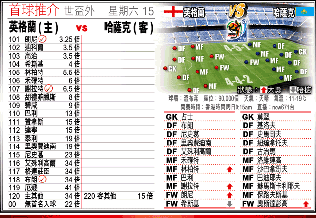 別以為哈薩克來自前蘇聯,爛船也有三斤釘,事實他們可能比香港更弱。周六他們在世盃歐洲區外圍賽第6組作客英格蘭,扒冷等同掟錢落鹹水海,「讓球主客和」英格蘭[-2],捧「主勝」之餘兼敲他們贏3:0。