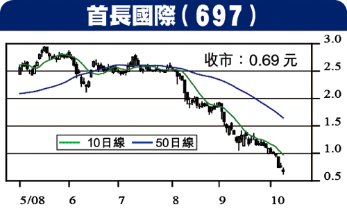 697首長國際 收市:0.69元
