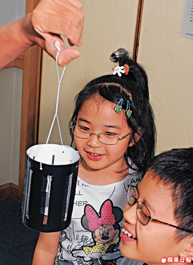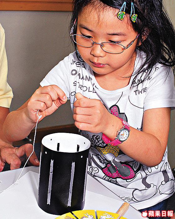 3.扭動繩子使圓筒轉動,透過空隙可以看到連環圖在動,成了動畫。