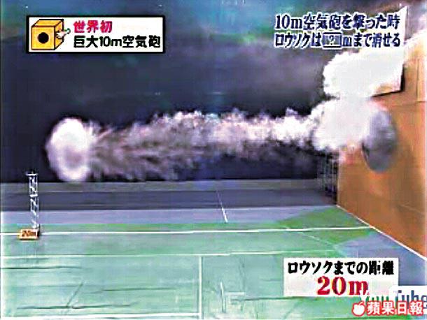 日本某電影台曾製造出一個10米高空氣炮,其冬甩形煙圈足可把20米遠的蠟燭吹熄,勁!( http://hk.youtube.com/watch?v=5tRUjgHGoKQ)