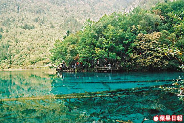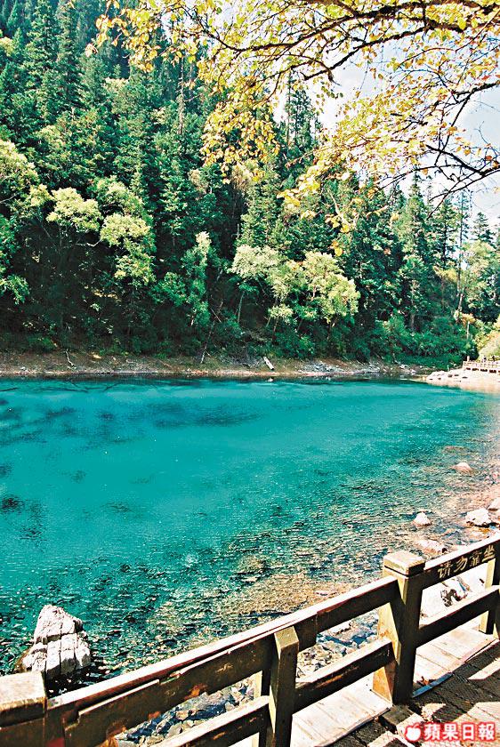 名字叫九寨溝,遊客看到的只有3條溝,3個寨。我坐上環保車往日則溝原始森林去。重遊,我依然充滿期待,沿途經過珍珠灘、鏡海、箭竹海、熊貓海。車到總站,立即回頭,到五花海觀景山崗才下車。九寨溝最美是水。眾海子中,又以五花海最引人入勝。湖水清澈見底,彩藍碧綠,層叠深淺有致,猶如一隻孔雀棲伏湖底。山影倒照中,一彎湖邊棧道如鯽遊人的五彩衣色,是攝影友的至愛。站在山崗,腳下是五花海,眼前,湖影山樹秋黃,卻不見遊人彩衣,我按下相機快門,留下這罕有的一刻。