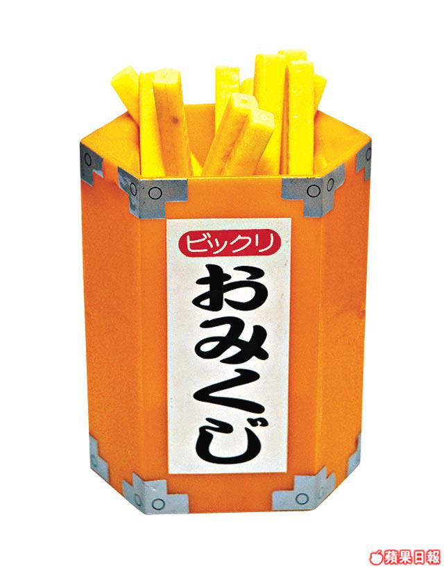 好多人都玩過「危機一發」呢類遊戲,款式通常都係插吓刀仔、㩒吓牙仔;最近見到呢個日式籤筒,玩法再唔係插同㩒,變成抽,係,抽籤個抽,睇吓邊位朋友咁唔好彩,抽中支連住彈弓底板嘅籤,啪一聲所有籤就會彈出,嚇一跳乜壓力都減晒啦。但唔知點解,硬係覺得啲所謂嘅籤都係似薯條多啲。