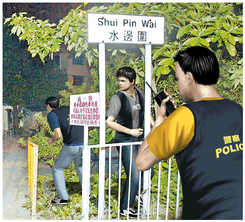 手槍藏於水邊圍村一村屋,但屋內不見有人,遂不動聲色在附近埋伏,監視租客返回及是否有人來村屋取槍;但多天來都無發現,疑對方已聞風先遁,遂於大前日(10日)下午1時採取行動破門入屋,在屋內抽屜搜出三支曲尺手槍及32發子彈,通知槍械專家到場檢驗,並根據屋主提供的資料,追緝租屋藏槍黑漢。