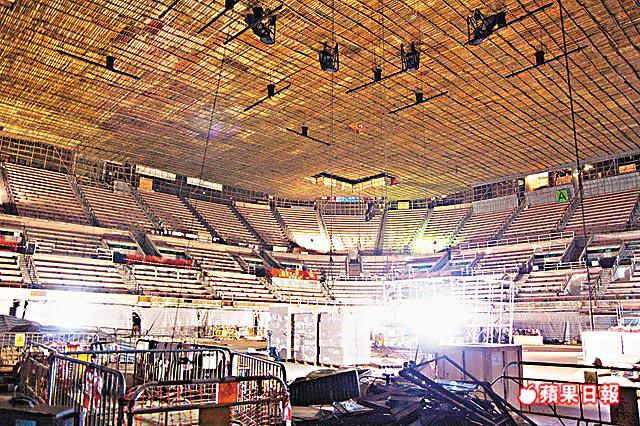 現正翻新的紅館昨日仍在趕工,外牆已完成維修工序,由於之前紅館場內的天花板有漏水情況,故今次主力維修天花板,至於座位也重新裝修。