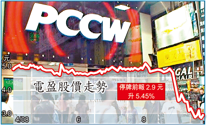 【本報訊】在終止出售旗下HKT的45%股權之後,李澤楷任主席的電訊盈科(008)旋即再有動作。電盈及其控股公司新加坡盈科拓展昨雙雙停牌,表示有待發出一項股價敏感資料。消息透露,電盈擬於這個波動的市況中,推出一個可望令股東受惠的新計劃,是次停牌並不涉及賣盤或出售任何資產,亦非為電盈引入新股東。電盈昨日上午10時開市時申請停牌,但於開市前時段有成交,股價升5.45%,停牌前報2.9元。