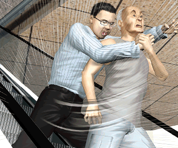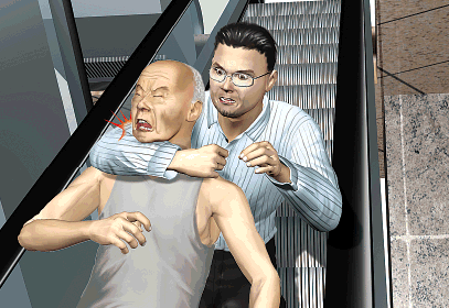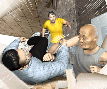 可是曹伯竟反唇相譏:「我文盲嚟㗎,唔識字㗎。」兩人一面穿衣,一面破口互罵,令更衣室充滿火藥味。稍後,曹伯換上背心及短褲,把濕毛巾放進一個膠袋後打算離開,姓藍男子不滿對方未就事件道歉,換完恤衫、西褲後衝出追上。當時,曹伯已離開健身中心乘扶手電梯到商場二樓,此時,姓藍男子追至喝令對方停下不果,疑氣憤下,涉嫌從後箍頸,阻止曹伯離去。曹伯大叫救命下,奮力反抗,但姓藍男子孔武有力,曹伯無法擺脫對方,竟反手施猴子偷桃,握揑姓藍男子下體。