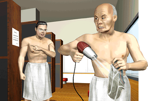 事發昨午一時許,當時姓曹老翁及姓藍男子,分別在告士打道伊利沙伯大廈三樓的舒適堡健身中心健身,兩人健身完畢各自洗澡後,在更衣室相遇。