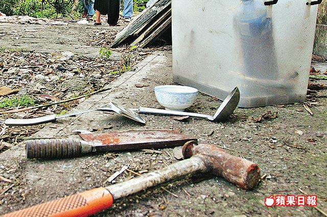 據悉,將軍澳尚德邨街坊陳伯(60餘歲)平日喜歡上山餵狗,最近一個月,他發現靈實醫院對開山坡一間被廢棄的石屋經常傳出狗吠聲,而石屋的大門被人用鐵鏈鎖上,石屋門外有大小鐵鑊、並放着多把牛肉刀、菜刀、生果刀、捕獸器、各式鑊鏟,石屋附近有大量碎骨和狗毛。