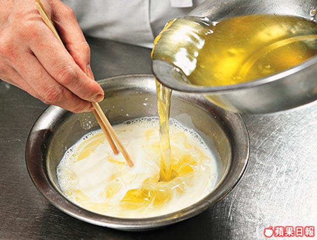 炒蛋白鮮奶很考功夫,油溫要柔,食起來蛋白才滑溜;動作要快手,就像斯特拉文斯基的《春之祭》,快速撥弦及強勁節奏,蛋白才不致黐鑊。
