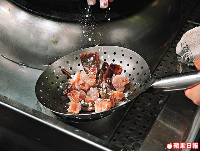 2.龍蝦撒少許生粉,放入滾油中泡一泡後,以冷油回鑊。