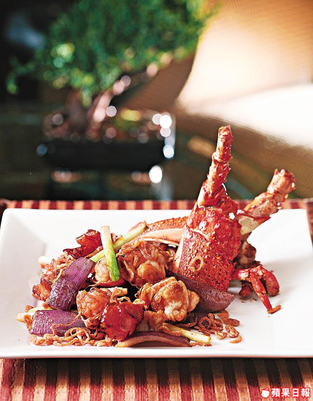 龍蝦(斬件)800克、紫洋葱(切件)150克、葱(切條)150克、亁葱60克