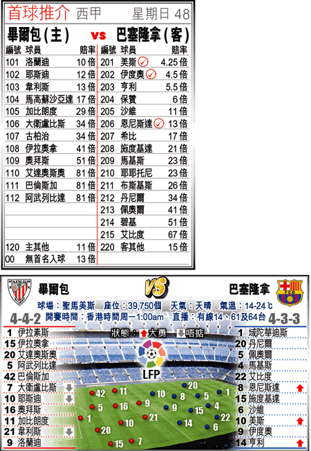 眾將態沉的畢爾包,即使周日可排出最強陣迎戰巴塞隆拿,相信也是徒然。巴塞陣中無疑擁多員國腳,但主力在國際賽反而能谷起狀態,單看亨利及恩尼斯達等如何大勇,便知難阻開出1.5倍W,甚至[-1]的「客勝」。
